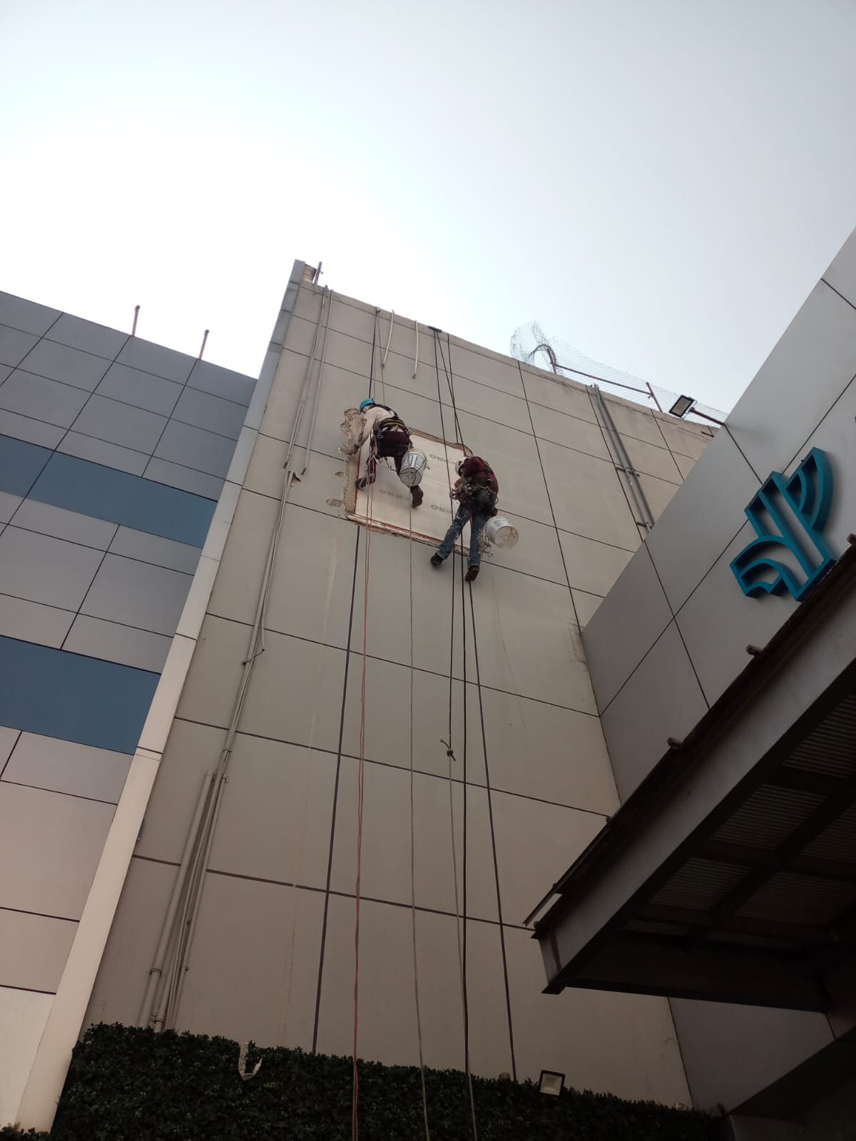Se realizaron diferentes trabajos en altura en diferentes edificios. Limpieza de cristales, descontaminación, reparaciones, etc.